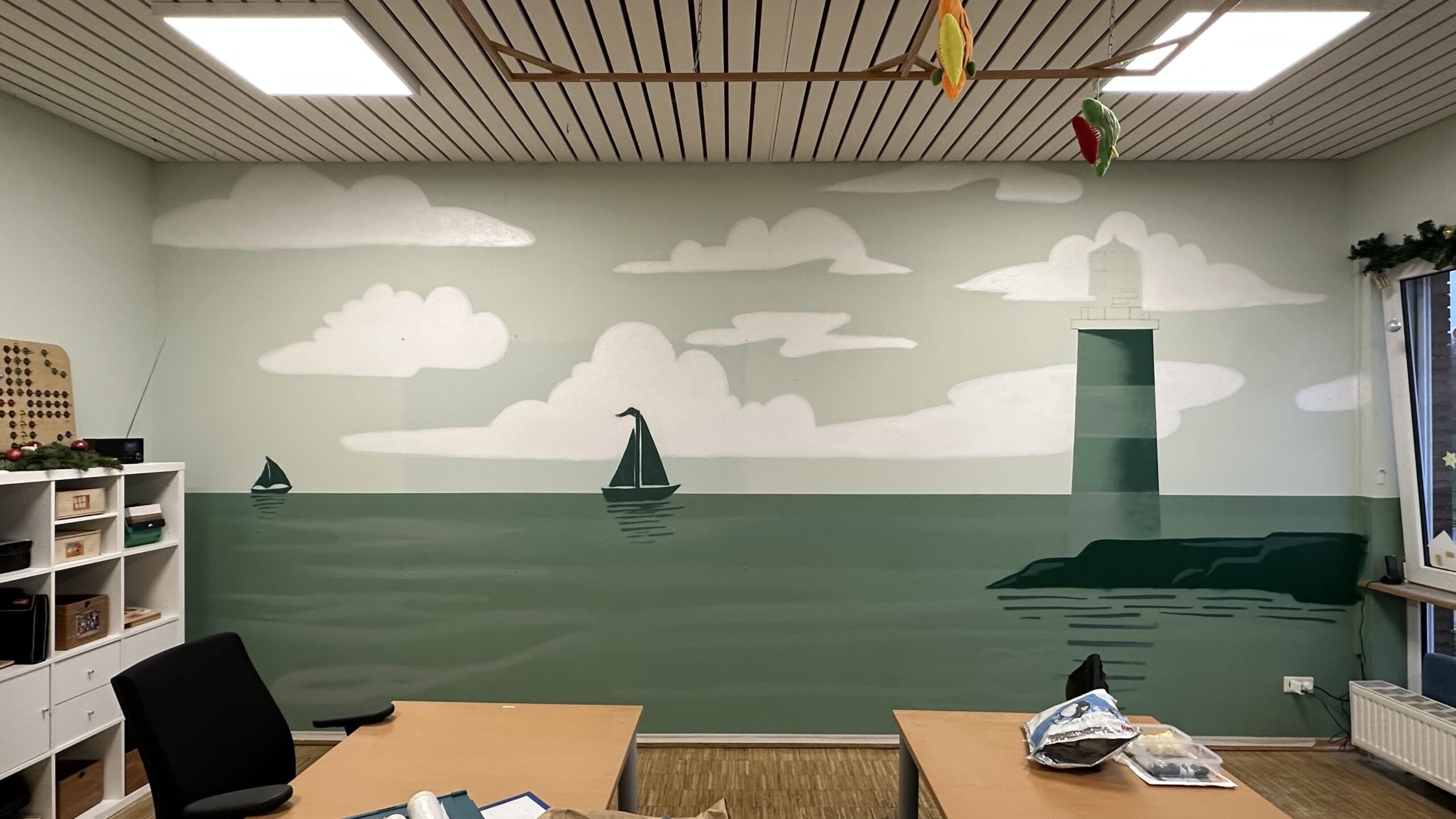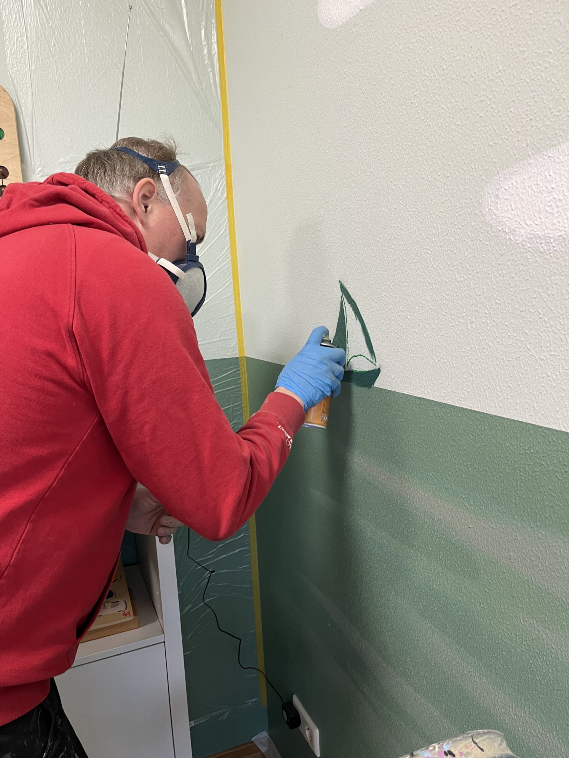 Germar von Freischuetz hat vor kurzem ein neues Graffiti-Projekt für die Lebenshilfe Leer abgeschlossen, eine lokale Organisation, die Menschen mit Behinderungen unterstützt. Die Innenwand im Eingangsbereich erstrahlt nun in einem einzigartigen Design: eine idyllische Landstraße mit Bushaltestellenschild und einem VW T1 Transporter als Blickfang. Zusätzlich wurde ein Fenster nahtlos in die Gesamtkomposition integriert. Der Kunde war so begeistert, dass er sofort ein weiteres Graffiti-Projekt in Auftrag gab.