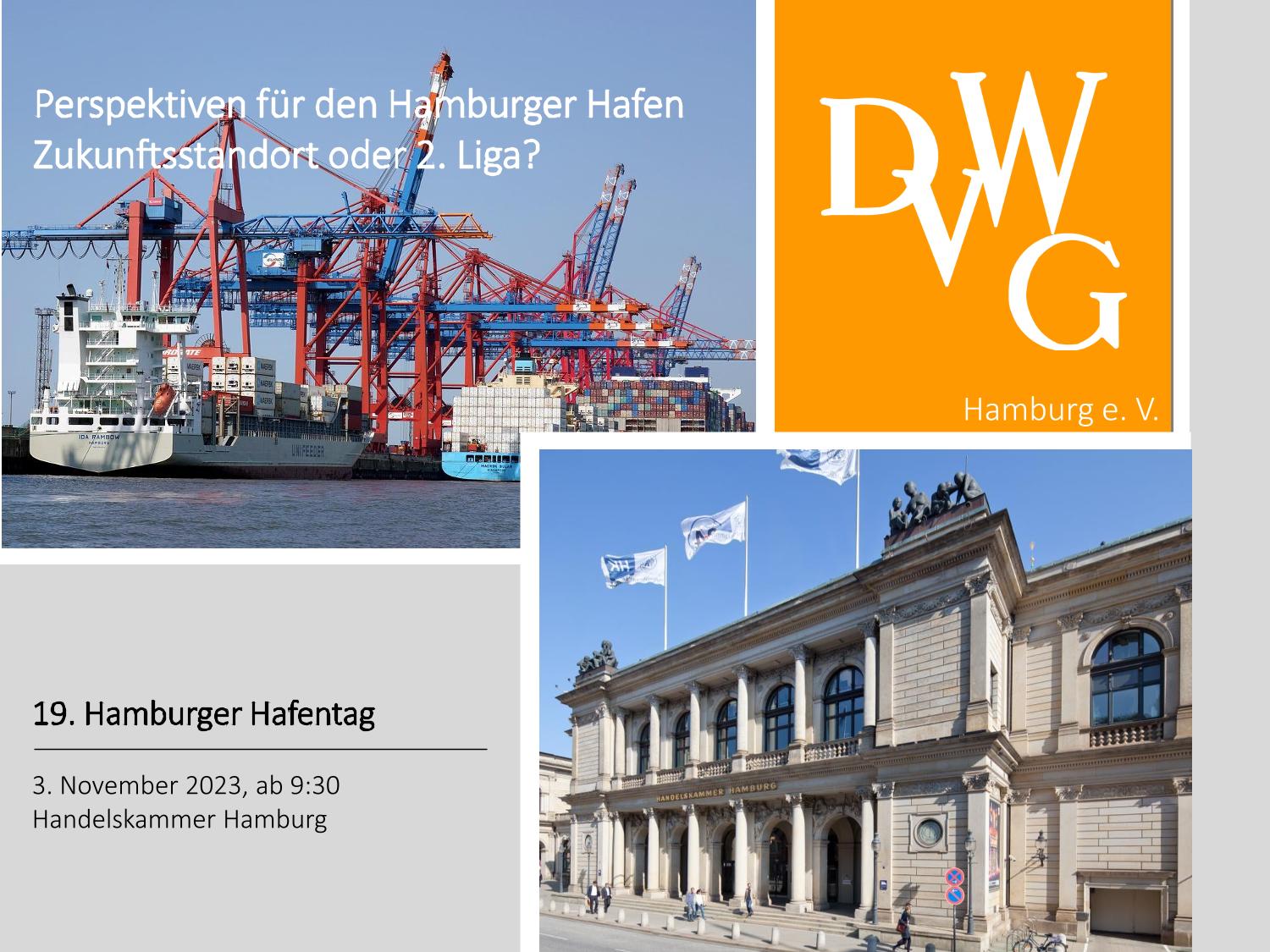 The­ma ist „Per­spek­ti­ven für den Ham­bur­ger Hafen Zukunfts­stand­ort oder 2. Liga?“